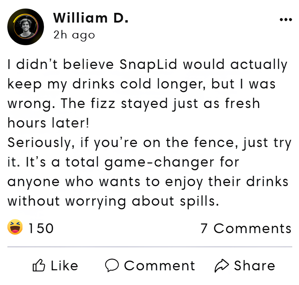 "I can enjoy my soda outdoors without worrying about bugs. Itβs a lifesaver!"