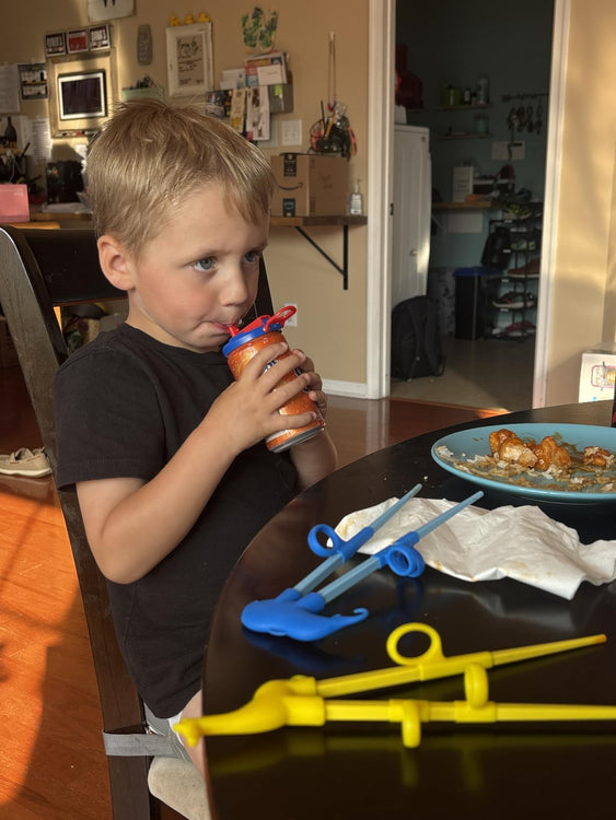 Ryder loves orange soda!!! And mom loves that these kids fit the mini cans of soda. No more wasted half cans and no more having to carry extra cups to pour the soda cans into!